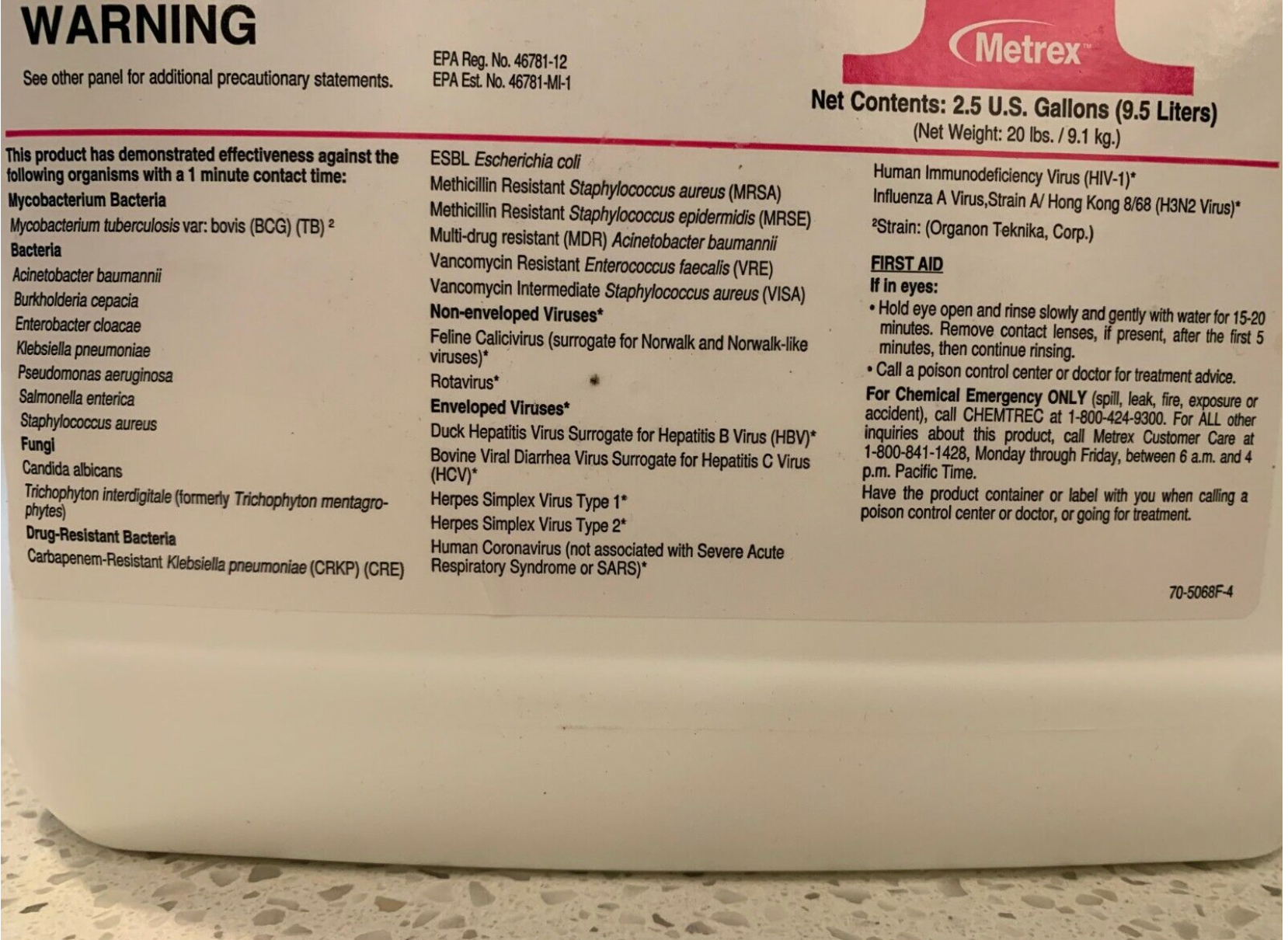 - 1-minute contact time for virucidal, bactericidal (including TB), fungicidal activity